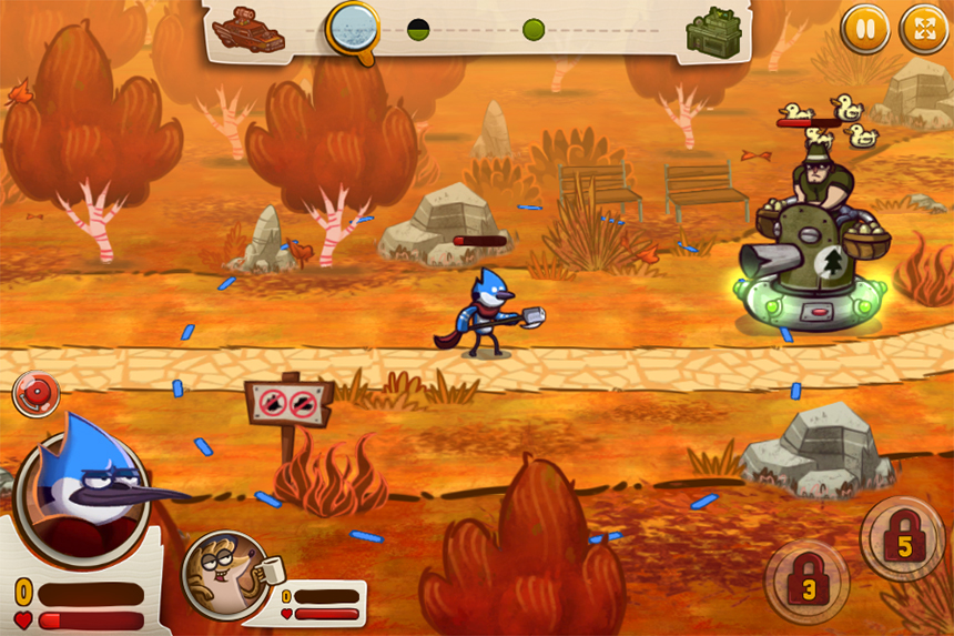 A prank war has descended on The Park courtesy of their rival park East Pines, but Mordecai and Rigby aren't going down without a fight. Polish up your best pranks and get ready to show East Pines who's boss in The Great Prank War on this amazing action tower defense!